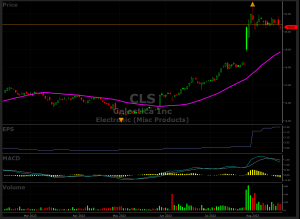 CLS resides in VectorVest’s Electronics (Misc. Products) grouping and is rated #1 out of 46 companies.  Moreover, it is also ranked #1 in the broader Electronic sector out of 250 stocks which is even more impressive. Note that the Electronic (Misc. Products) group itself is ranked only 162 in Relative Timing (RT) out of 222 tracked industries.  That is not a plus, as it is more desirable to invest in companies with high industry group rankings, since groups usually carry the strong and weak players with it.  Yet, CLS appears to be a “star” performer on its own, bettering the group’s performance.