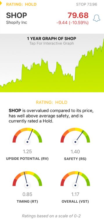 It gets even easier, though. You’re given a clear buy, sell, or hold recommendation for any given stock at any given time based on its overall VST rating. As for SHOP, here’s what you need to know: